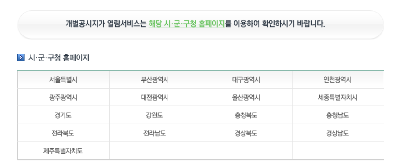 3. 원하는 부동산 소재지의 지역 홈페이지를 클릭해줍니다.