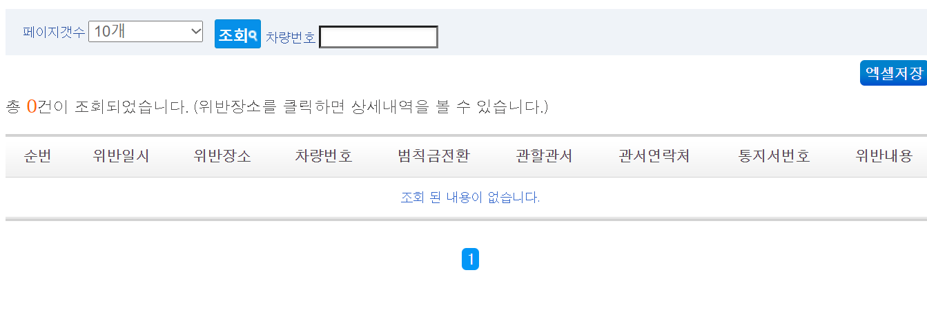 4. 그럼 위반내역이 조회됩니다.