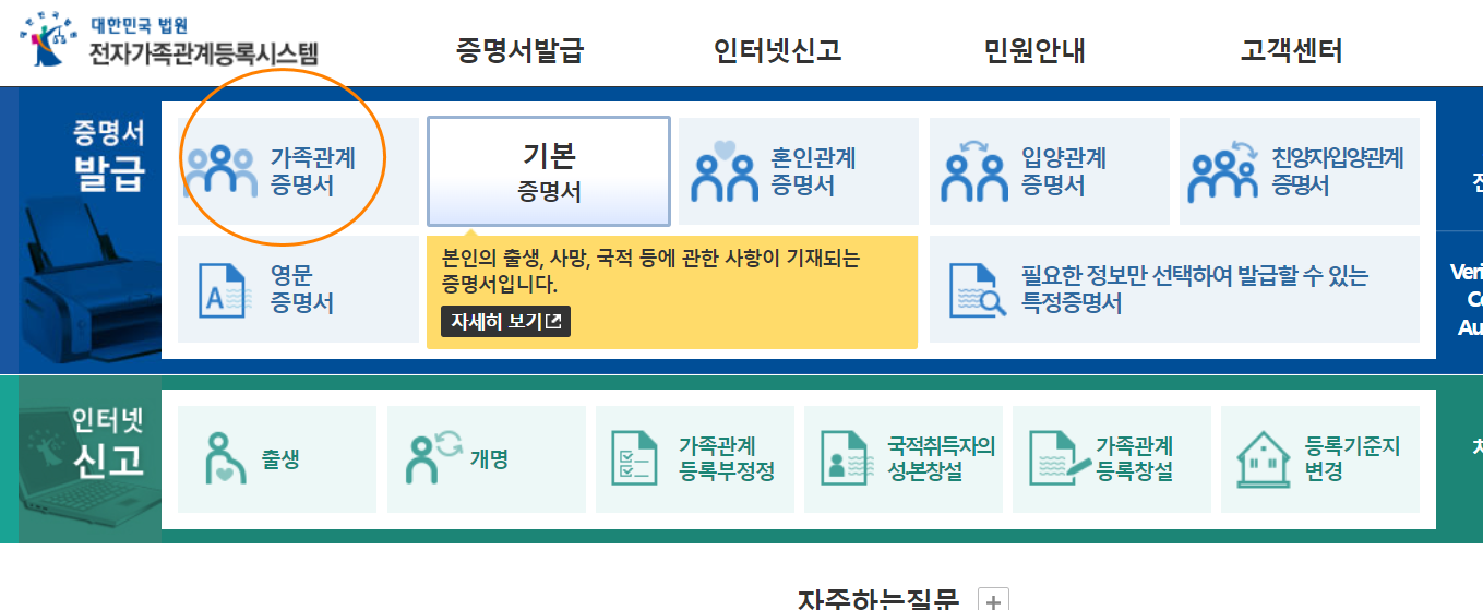 가족관계증명서 현장 발급하기