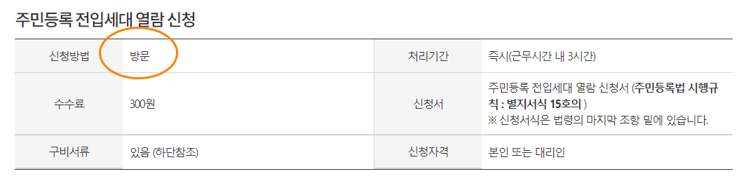 보통 민원업무는 정부24 홈페이지를 방문하면 온라인으로도 이용이 가능합니다. 그러나 전입세대열람원의 경우에는 온라인을 통한 열람 및 발급이 불가능합니다.